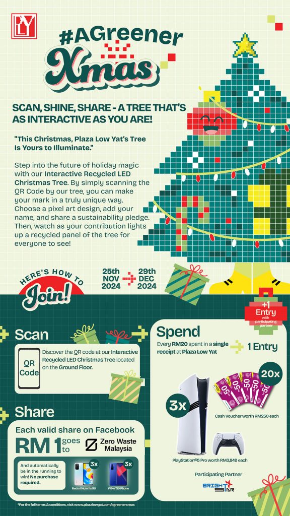 This Christmas, Plaza Low Yat goes from tech talks to tree talks, we’re levelling up our holiday spirit by reusing our past season’s decorations – because we’re going eco-tastic this season!