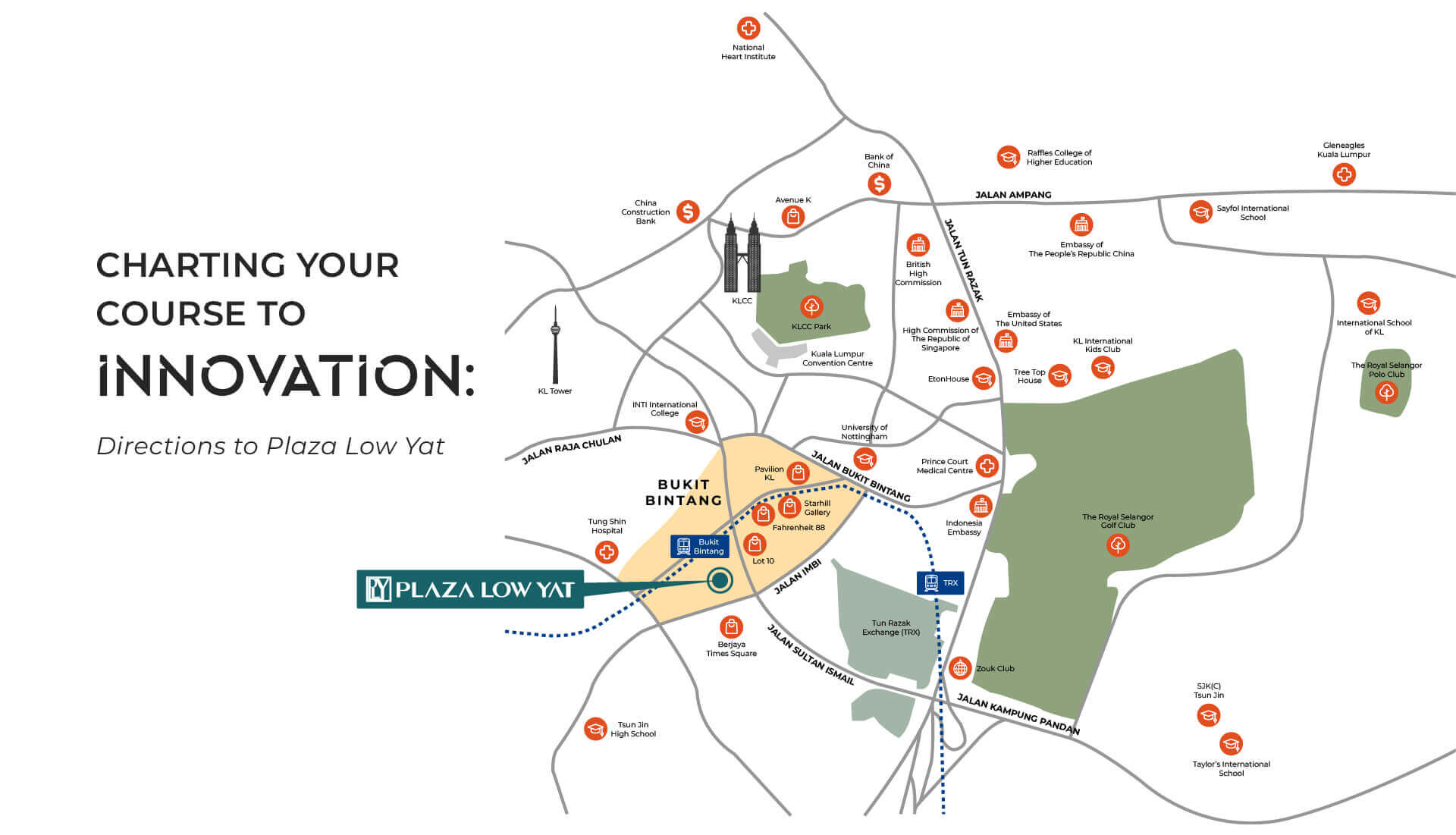 From the Imbi station, take a 5 minutes walk to get to Plaza Low Yat, located behind the Amoda building.